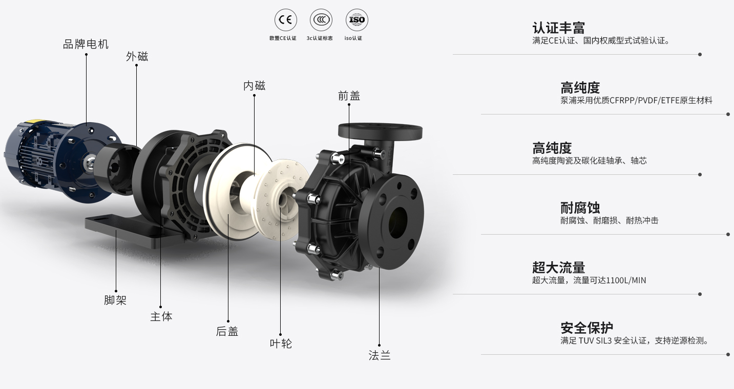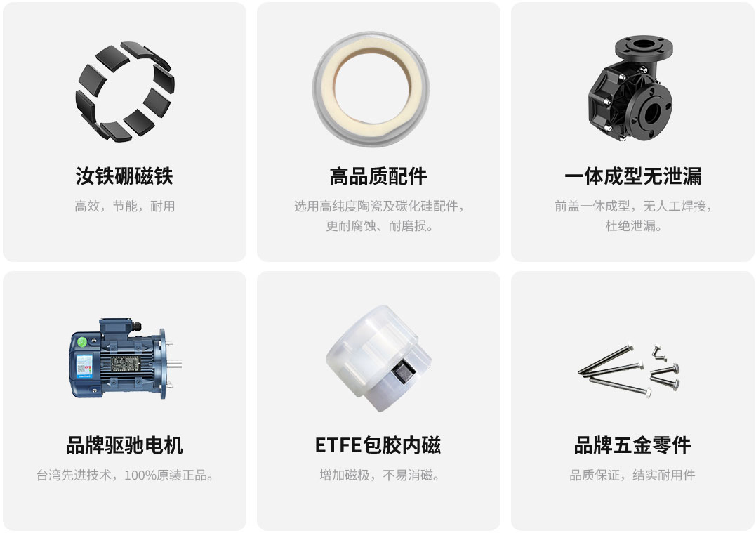 耐強(qiang)腐蝕;采用釹鐵(tie)硼(peng)高(gao)效強(qiang)磁(ci)(ci)鐵(tie)不消磁(ci)(ci);進出水口一體成型(xing)專(zhuan)利(li)無泄漏;品種多、流(liu)量(liang)大、噪音低;壽命(ming)長達10年以上(shang);高(gao)揚(yang)程、高(gao)流(liu)量(liang),尺寸型(xing)號可(ke)定制節能(neng)環保,同類產品對比(bi)耗電低精選永磁(ci)(ci)磁(ci)(ci)鐵(tie)汝鐵(tie)硼(peng),磁(ci)(ci)性能(neng)力加強(qiang)